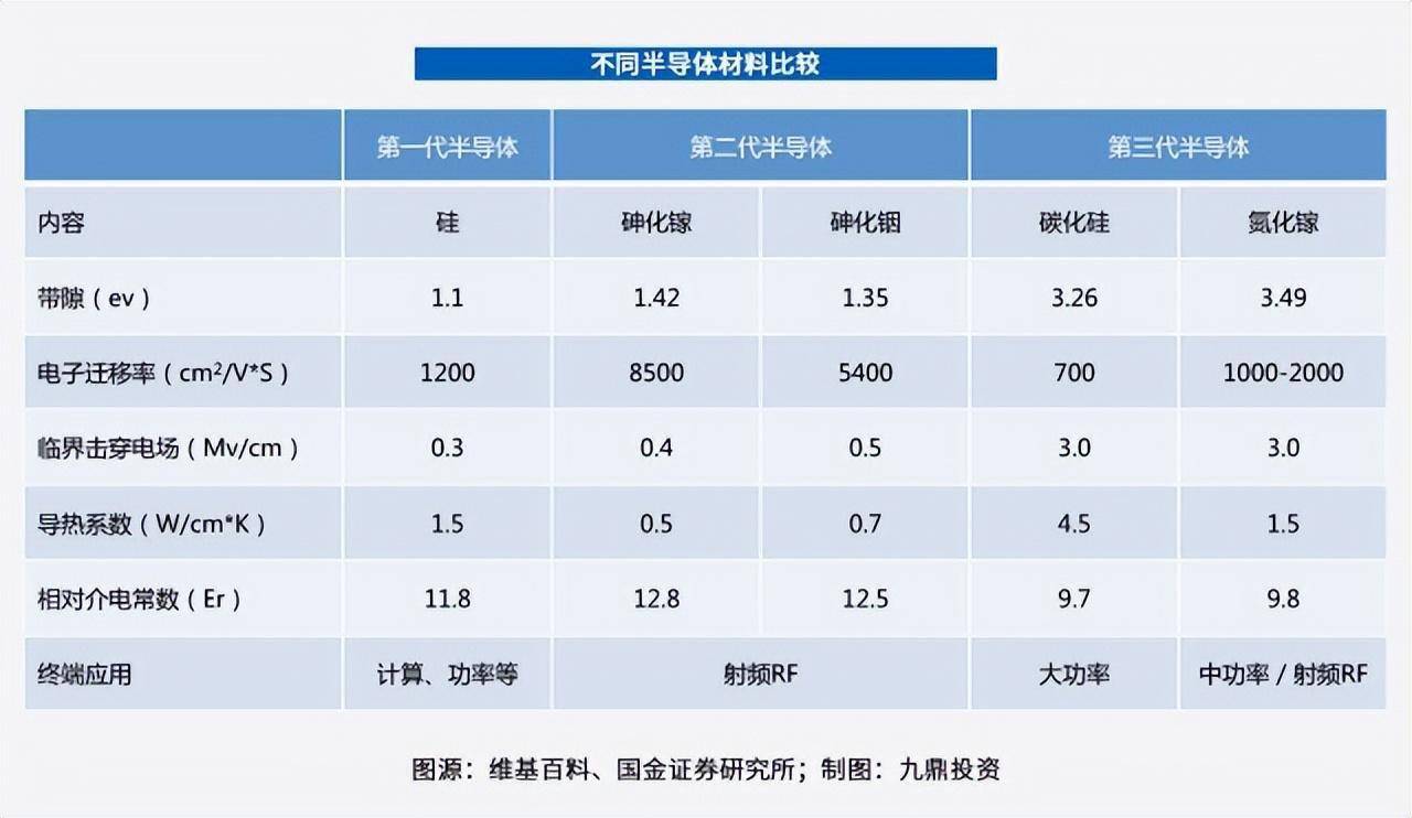 和前两代相比,第三代半导体材料具有高热导率、高击穿场强、高饱和电子漂移速率和高键合能等优点,可满足现代电子技术对高温、高功率、高压、高频以及抗辐射等恶劣条件的新要求。