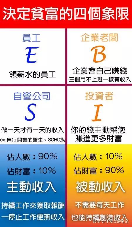 尤其是投资理财和创建自己事业的思想会发生根本性的转变看过富爸爸之后,明白了他所表达的赚钱四个象限的意思。明白了如果一个人总是象限左侧是根本无法实现财务自由。