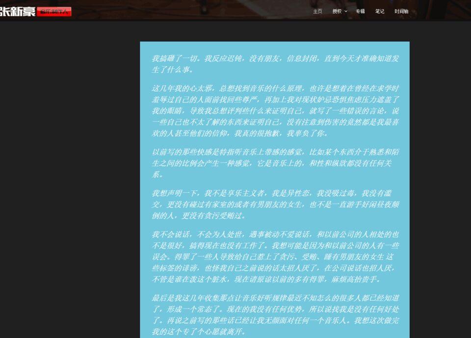 首先我们先Z新豪网站的事情,一月份的时候Z新豪在网站发了一个长文内容如下
