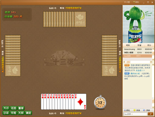 大菠萝  当前版本: 1.0.0【游戏简介】十三张是盛行于华东、华南一带的牌类游戏,一副牌52张(除去大小王),共4个人游戏,每家13张乐玩电子老虎机游戏。玩家把13张牌分别以头、中、底同时摆出来比较大小,确定胜负,是一种体现玩家智慧与勇气的博弈游戏。十三张【游戏规则】1、名词解释墩数: